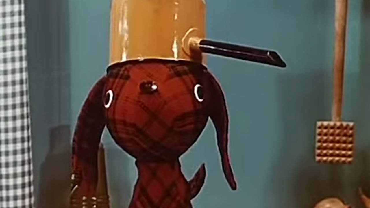 Pewien mężczyzna, odważny spadochroniarz, ma problem z bolącym zębem, jednak boi się pójść do dentysty. Zaprowadza go do niego jego kilkuletni syn. W gabinecie oprócz dentysty oczekuje go pluszowa zabawka – \"Piesek w kratkę\", którą mężczyzna pamięta z okresu swojego dzieciństwa. Lekarz, odtwarzając mężczyźnie na magnetowidzie filmy z udziałem pieska, powoduje, że ten, pochłonięty oglądaniem ulubionego bohatera dzieciństwa, nie zwraca uwagi na zbiegi.